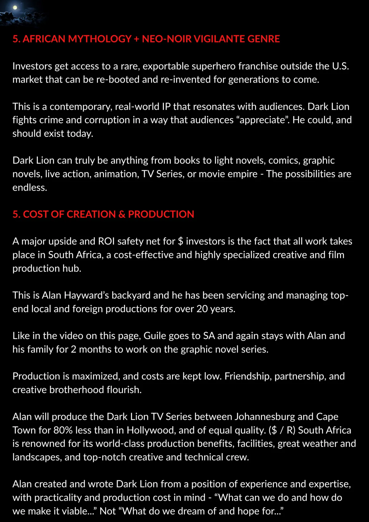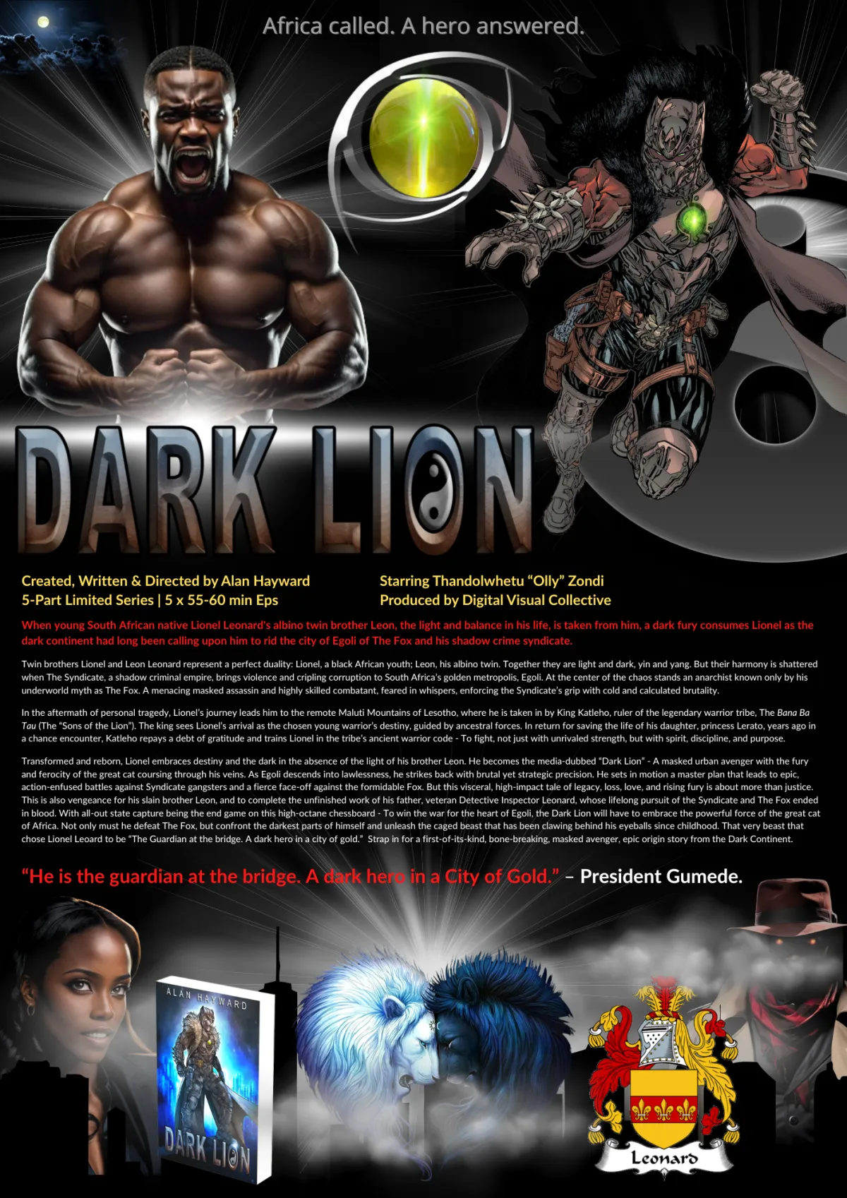 Filmmaker & Comicbooker unite. Egoli's dark avenger born from Light & Dark. Yin & Yang. The start of Alan & Guile's creative brotherhood.